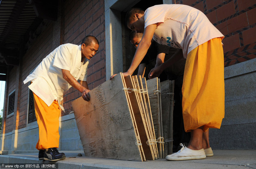 泉州南少林武僧釋理亮借助三合板上演少林絕技“水上漂”,在水面“飛奔”了18米遠(yuǎn)。那么,釋理亮的“水上漂”功夫是如何練成的呢?由于訓(xùn)練刻苦,三合板經(jīng)常被踏出洞來,釋理亮不得不在每次訓(xùn)練前認(rèn)真檢查三合板質(zhì)量。林朝陽(yáng)/CFP