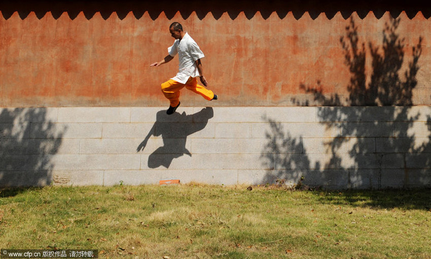 釋理亮平日時(shí)常練習(xí)飛檐走壁,他說(shuō)這也是鍛煉腿部爆發(fā)力的一種方式。 林朝陽(yáng)/CFP