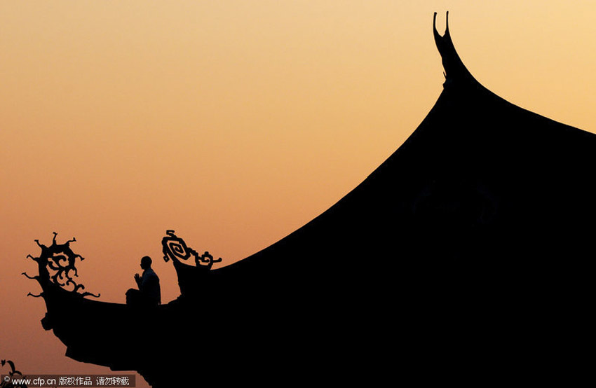 釋理亮也很注重內家心法,每天都會按時爬到屋檐上獨自打坐調息。 林朝陽/CFP