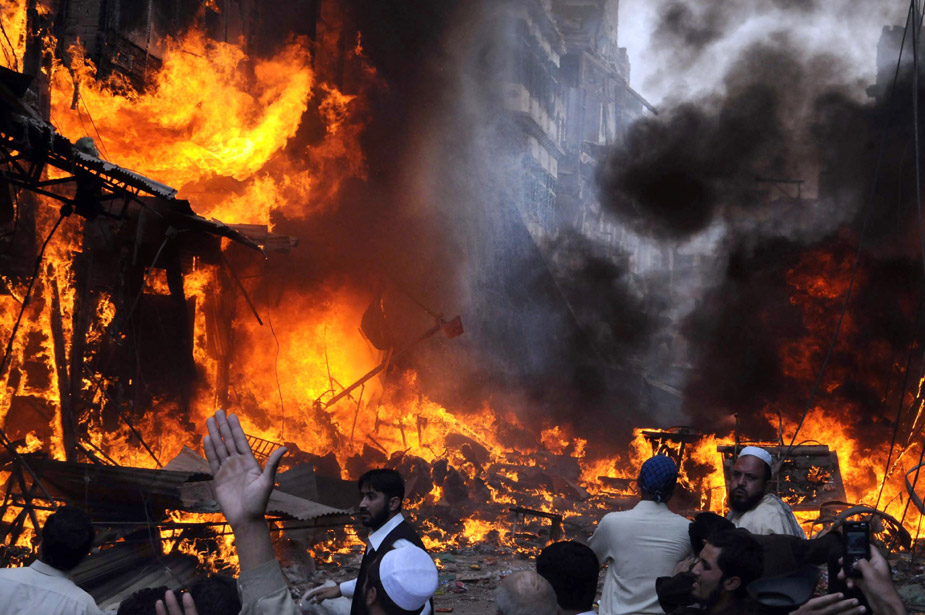 10月28日,巴基斯坦西北部城市白沙瓦一個人口密集的集市遭汽車炸彈襲擊。圖片來源:中國新聞網(wǎng)