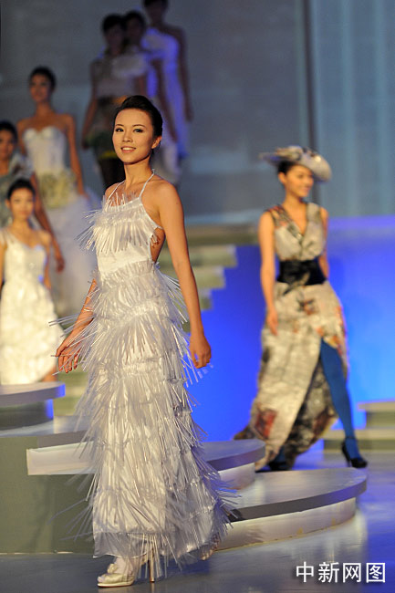 10月31日晚,“2009中華小姐環(huán)球大賽”總決賽上,12名入圍總決賽的佳麗身著各式服裝展現(xiàn)曼妙身姿,此外大賽還設(shè)計(jì)了一套“廢品服裝”呼吁環(huán)境保護(hù)。中新網(wǎng)記者 金碩 攝