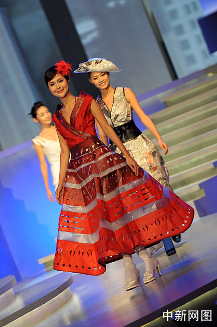 10月31日晚,“2009中華小姐環(huán)球大賽”總決賽上,12名入圍總決賽的佳麗身著各式服裝展現(xiàn)曼妙身姿,此外大賽還設(shè)計了一套“廢品服裝”呼吁環(huán)境保護(hù)。中新網(wǎng)記者 金碩 攝