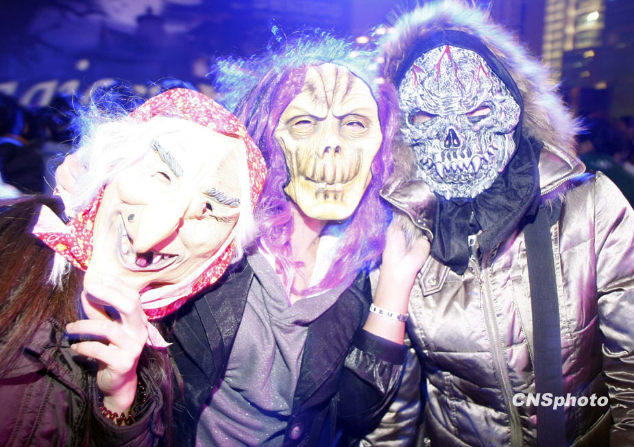 10月31日是西方的“萬(wàn)圣節(jié)”,世界各地的群眾穿著奇異的服飾、打扮鬼魅的造型迎接“鬼節(jié)”的到來(lái)。在北京青年們聚集在一起狂歡,迎接萬(wàn)圣節(jié)。中新社發(fā) 楊可佳 攝