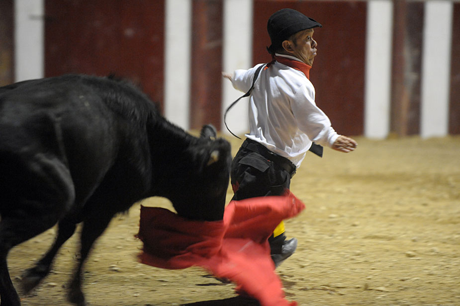 近日,哥倫比亞上演了一場(chǎng)精彩的“侏儒斗牛”。這些侏儒和小丑來(lái)自墨西哥一個(gè)馬戲團(tuán),他們每年都會(huì)在美國(guó)等地進(jìn)行演出。圖片來(lái)源:中國(guó)新聞網(wǎng)