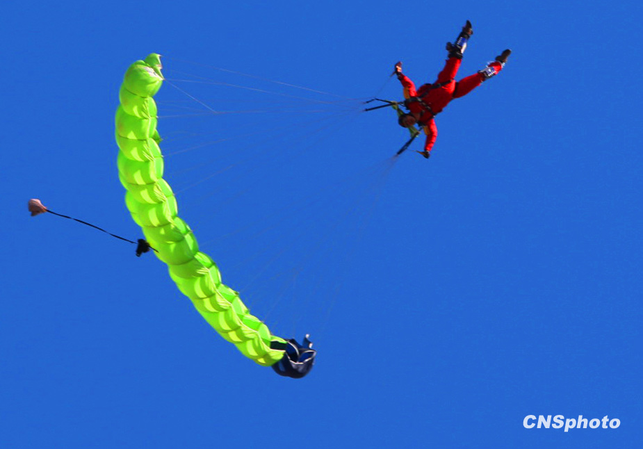 慶祝中國人民解放軍空軍成立60周年飛行跳傘表演,11月15日上午在北京沙河機場舉行。