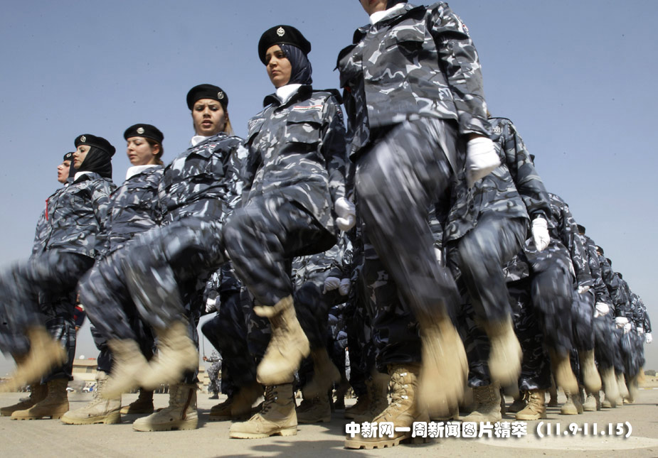 9日(周一),美國培訓(xùn)的新一批伊拉克警務(wù)人員,經(jīng)過專定的警察科目培訓(xùn)后正式畢業(yè),其中還包括50名女警察。她們將參加巴格達(dá)的警察部隊(duì)。圖片來源:中國新聞網(wǎng)