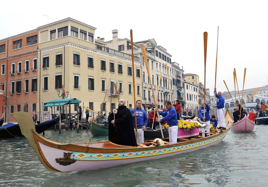 意大利北部歷史名城威尼斯人口跌至6萬以下,當?shù)厥S嗟木用?4日替自己的城市安排了一場“葬禮”,希望喚起世人對該市當前困境的重視。圖片來源:中國新聞網(wǎng)