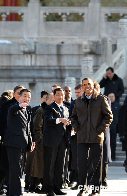 11月17日,正在中國進行國事訪問的美國總統(tǒng)奧巴馬一行參觀北京故宮。圖片來源:中國新聞網(wǎng)