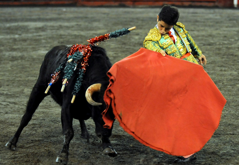 近日,哥倫比亞的一位13歲的小斗牛士在哥倫比亞的豐碑競(jìng)技場(chǎng)參加斗牛大賽。圖片來(lái)源:中國(guó)新聞網(wǎng)