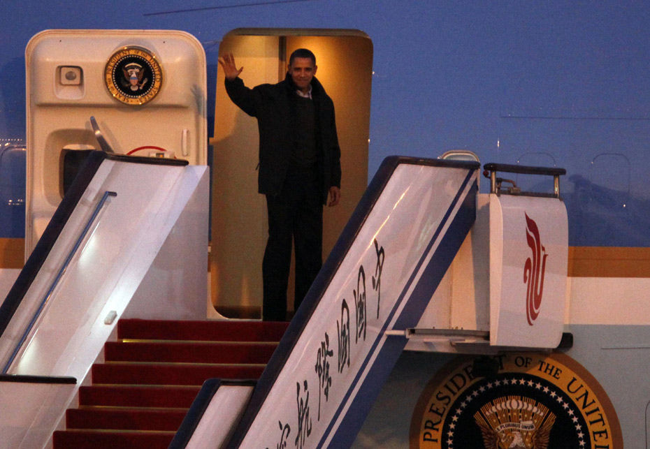 11月18日,北京首都國際機(jī)場,美國總統(tǒng)奧巴馬結(jié)束訪華行程乘坐專機(jī)離開北京。