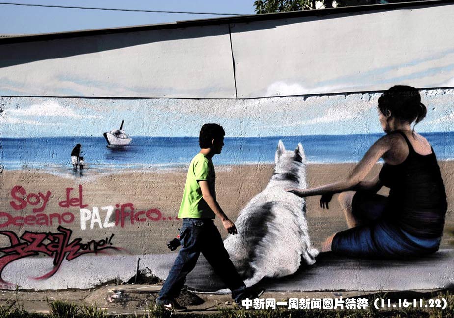 11月15日,智利圣地亞哥近千名藝術(shù)家繪制了1800米長的涂鴉墻,打破了吉尼斯世界紀(jì)錄。圖片來源:中國新聞網(wǎng)