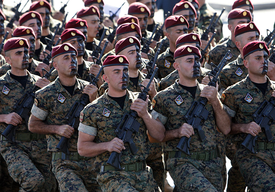 11月22日,黎巴嫩軍隊在貝魯特市中心舉行閱兵式,慶祝黎巴嫩獨立66周年。圖片來源:中國新聞網(wǎng)