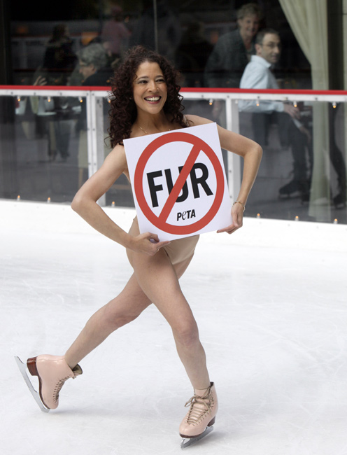 11月24日,美國花樣滑冰的傳奇人物、1979年世界花滑錦標賽冠軍得主芭比洛尼在紐約洛克菲勒廣場復出“裸滑”。這次表演是為了支持善待動物協(xié)會的反對皮草行動。