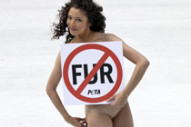 11月24日,美國花樣滑冰的傳奇人物、1979年世界花滑錦標(biāo)賽冠軍得主芭比洛尼在紐約洛克菲勒廣場復(fù)出“裸滑”。這次表演是為了支持善待動物協(xié)會的反對皮草行動。