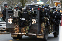 11月29日,美國4名警察在華盛頓州空軍基地附近一間咖啡館被兩名槍手槍擊,4人當(dāng)場死亡。美國軍方派遣反恐特警小組展開大規(guī)模追查。圖片來源:中國新聞網(wǎng)