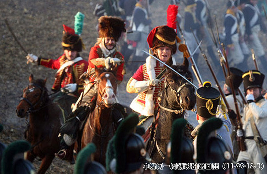 當(dāng)?shù)貢r(shí)間11月28日,一些軍事史愛(ài)好者在捷克布爾諾市郊外的特瓦洛澤納村,參加一場(chǎng)重現(xiàn)1805年奧斯特利茨戰(zhàn)役的活動(dòng)。當(dāng)年拿破侖領(lǐng)導(dǎo)的法國(guó)軍隊(duì)大敗奧地利神圣羅馬帝國(guó)和沙皇俄國(guó)聯(lián)軍,改變了當(dāng)時(shí)的歐洲版圖。圖片來(lái)源:中國(guó)新聞網(wǎng)>>點(diǎn)擊觀看詳細(xì)內(nèi)容