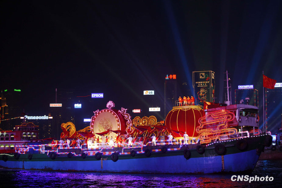 12月5日晚,第5屆東亞運(yùn)動會開幕式在香港維多利亞港舉行,同時配以花船巡游、燈光效果和煙花匯演,成為一屆富有特色的水上開幕式。中新社發(fā) 盛佳鵬 攝