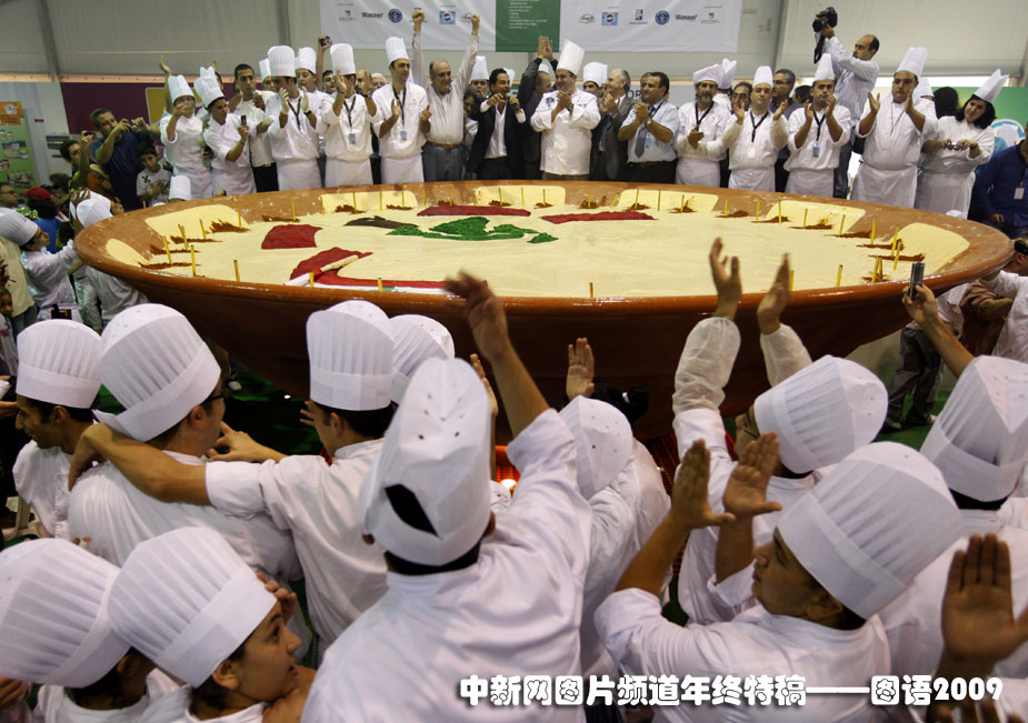 世界最重豆沙餅:10月14日,黎巴嫩廚師制作出2056公斤巨型豆沙餅,打破了世界吉尼斯紀(jì)錄。圖片來(lái)源:中國(guó)新聞網(wǎng)