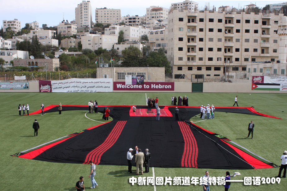 世界最大的球衣:10月25日,巴勒斯坦人利用傳統(tǒng)刺繡工藝制作了世界上最大的球衣,并獲得了吉尼斯紀(jì)錄的認(rèn)可。圖片來源:中國新聞網(wǎng)
