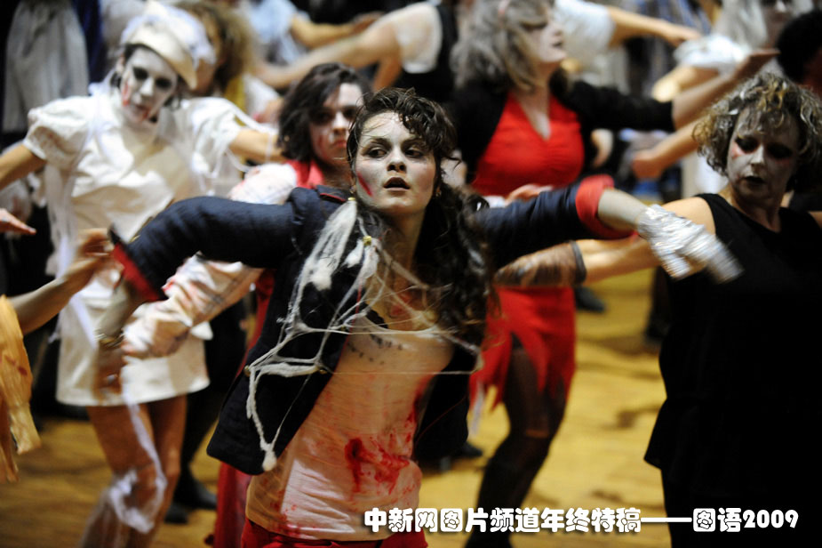 全世界最多人同時(shí)跳舞世界紀(jì)錄:10月25日,“戰(zhàn)栗全世界”活動(dòng)在全球300多座城市同期舉行,全球一共有大約20000人同時(shí)跳起了邁克·杰克遜著名的戰(zhàn)栗舞。歌迷們借此表達(dá)了對(duì)這位流行音樂(lè)之王的哀思。并且刷新了全世界最多人同時(shí)跳舞的世界紀(jì)錄。圖為在法國(guó)的Gourin,歌迷跳起“戰(zhàn)栗舞”。圖片來(lái)源:中國(guó)新聞網(wǎng)