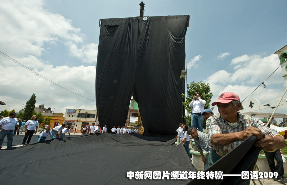最長的褲子:6月14日,墨西哥人在墨西哥州的阿爾莫洛亞展示一條60.1米長的褲子,打破最長褲子的吉尼斯世界紀錄。圖片來源:中國新聞網