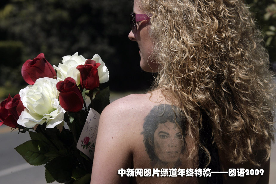 9月3日,流行天王邁克爾·杰克遜的私人葬禮在加州林茵紀(jì)念公園墓園舉行。一位歌迷前來送別。