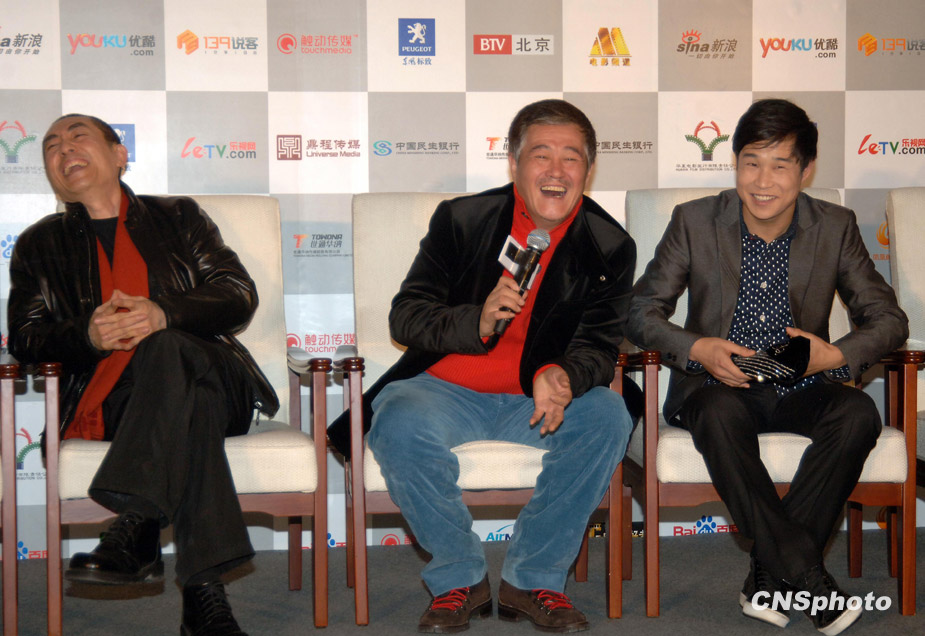 12月9日下午,張藝謀喜劇新作《三槍拍案驚奇》在京舉行首映發(fā)布會(huì),導(dǎo)演張藝謀、大病初愈的趙本山攜孫紅雷、小沈陽(yáng)、閆妮、倪大洪、程野、毛毛全明星主創(chuàng)團(tuán)隊(duì)齊齊亮相,F(xiàn)場(chǎng)張藝謀、趙本山、小沈陽(yáng)搞笑不斷,引得爆笑連連,上演了一出戲外喜劇。趙本山首度回應(yīng)了花兩億購(gòu)買(mǎi)私人飛機(jī)一事,稱(chēng)還沒(méi)有定下來(lái)。張藝謀表示會(huì)和“趙家班”繼續(xù)深度合作,并且豪言預(yù)計(jì)未來(lái)的中國(guó)電影單部影片票房可能達(dá)到2億美元。圖為張藝謀、趙本山、小沈陽(yáng)成為“笑彈”。中新社發(fā) 李學(xué)仕 攝