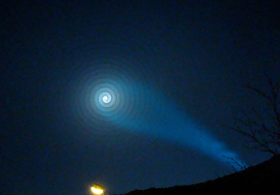 12月9日,挪威北部特羅姆瑟市上空發(fā)現(xiàn)不明“藍色發(fā)光螺旋狀”現(xiàn)象。圖片來源:中國新聞網(wǎng)