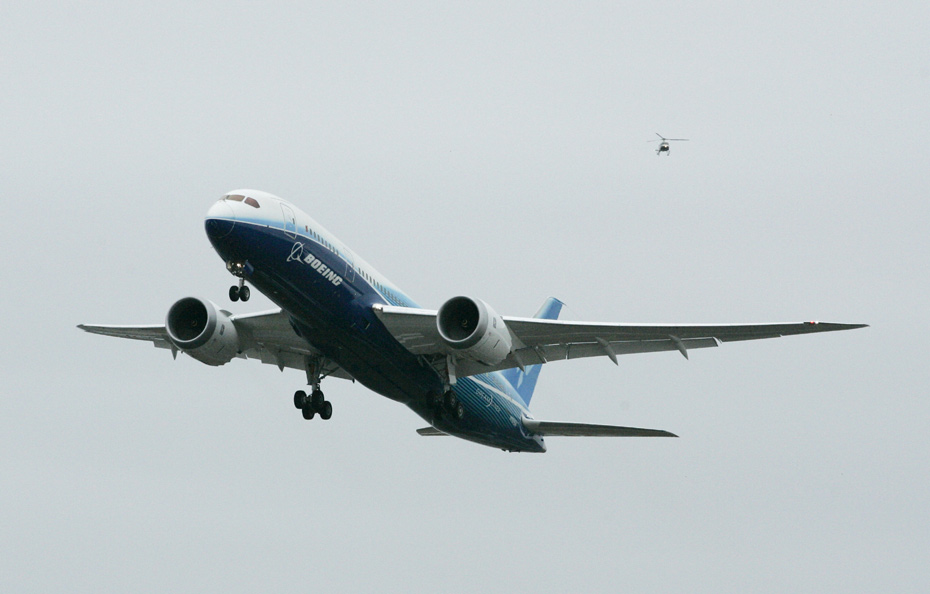 當(dāng)?shù)貢r(shí)間15日上午10時(shí),華盛頓州埃佛瑞特潘恩機(jī)場,兩名飛行員邁克爾•卡瑞克爾和蘭多爾•內(nèi)維勒駕駛的波音787飛機(jī)順利升空,在飛行了大約四個(gè)多小時(shí)后返回地面。
