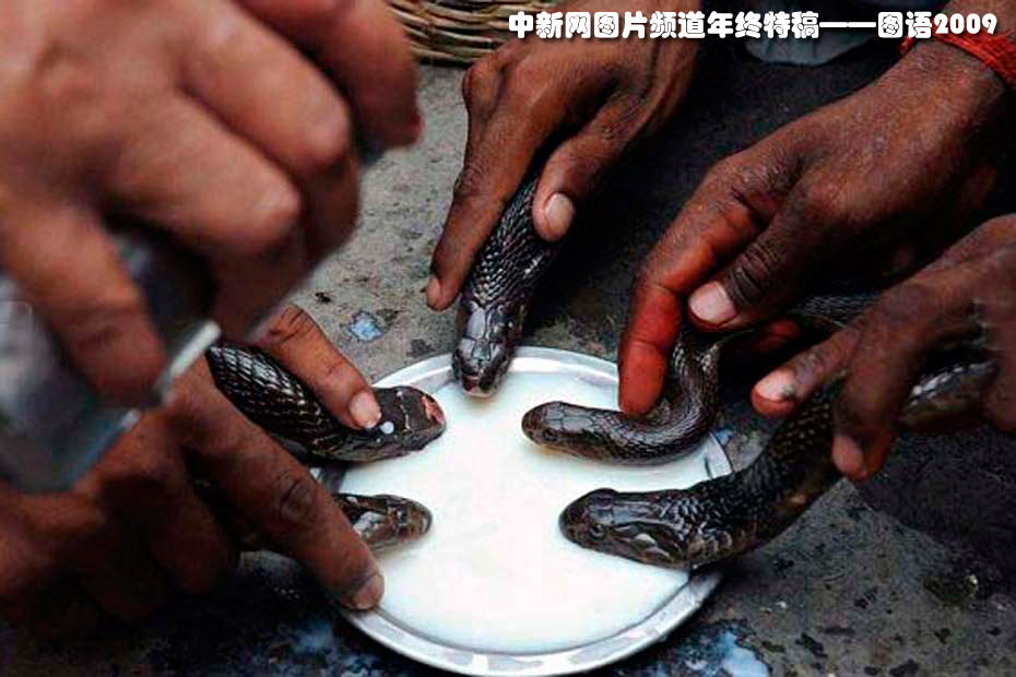 印度教“蛇節(jié)”眼鏡蛇洗牛奶浴——7月26日,印度北部城市阿姆利則一座印度教神廟內(nèi),耍蛇人將眼鏡蛇浸入牛奶中。當(dāng)天是印度教傳統(tǒng)節(jié)日——蛇節(jié)(Nag-Panchami),眾多印度教徒紛紛前往寺廟進(jìn)行膜拜。