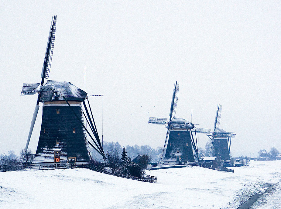 12月17日,荷蘭風(fēng)車上積滿雪花。