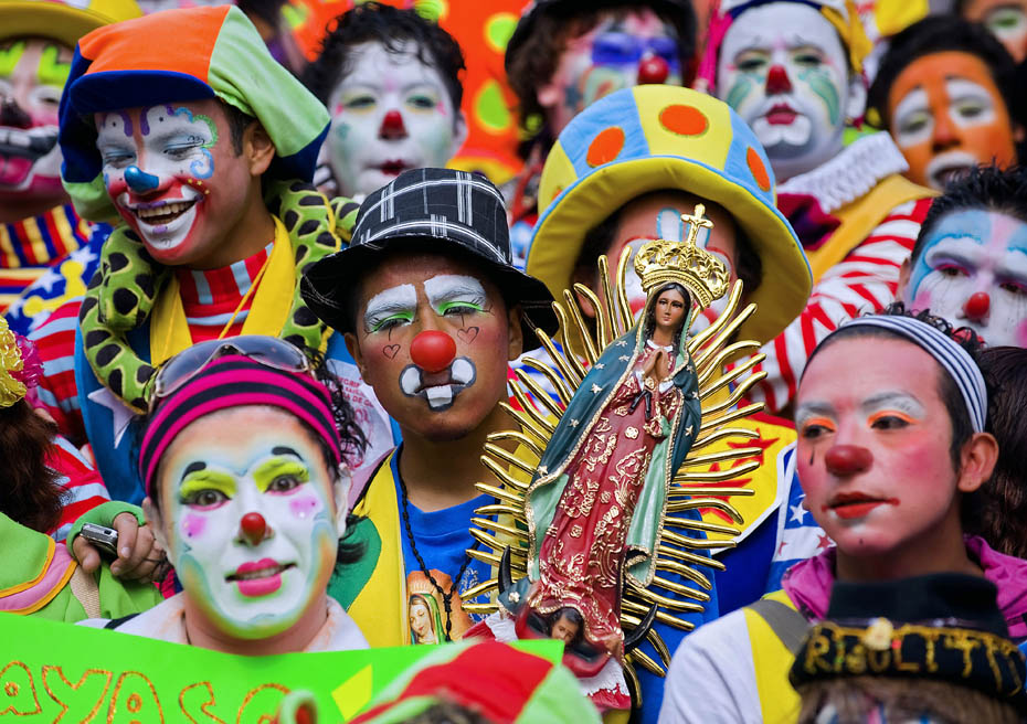 12月16日,墨西哥小丑們聚集在首都墨西哥城參加街頭游行活動(dòng),700多名小丑用自己五彩斑斕的服飾和滑稽可笑的表演為沿途的人們帶來歡笑。圖片來源:中國新聞網(wǎng)