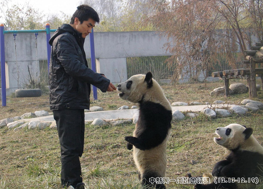 十二月十八日,陜西省珍稀野生動(dòng)物搶救飼養(yǎng)研究中心里,二00八年八月人工繁育的兩只大熊貓?jiān)阪覒。圖片來(lái)源:中國(guó)新聞網(wǎng)>>點(diǎn)擊觀看詳細(xì)內(nèi)容