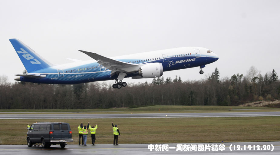 15日(周二),美國(guó)波音公司最新夢(mèng)幻客機(jī)波音787終于在華盛頓州升空試飛,兩萬五千多人忍受寒冷觀看了試飛過程。圖片來源:中國(guó)新聞網(wǎng)