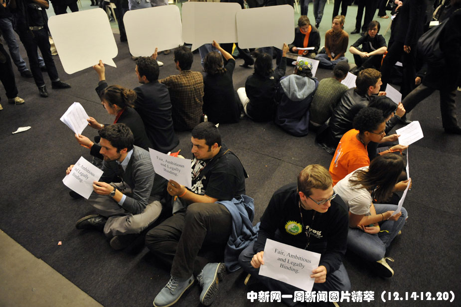 16日(周三),哥本哈根,一群年輕人在貝拉中心靜坐示威,要求聯(lián)合國氣候變化大會(huì)取得實(shí)質(zhì)成果。圖片來源:中國新聞網(wǎng)