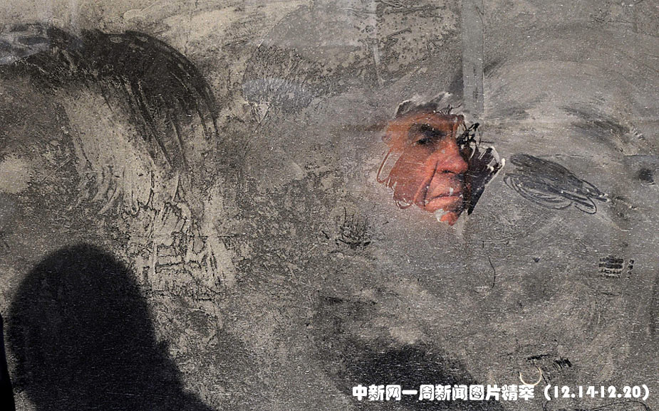 15日(周二),烏克蘭首都基輔的氣溫降至攝氏零下16度,圖為一名男子在公交車(chē)上透過(guò)結(jié)冰的車(chē)窗往外看。圖片來(lái)源:中國(guó)新聞網(wǎng)