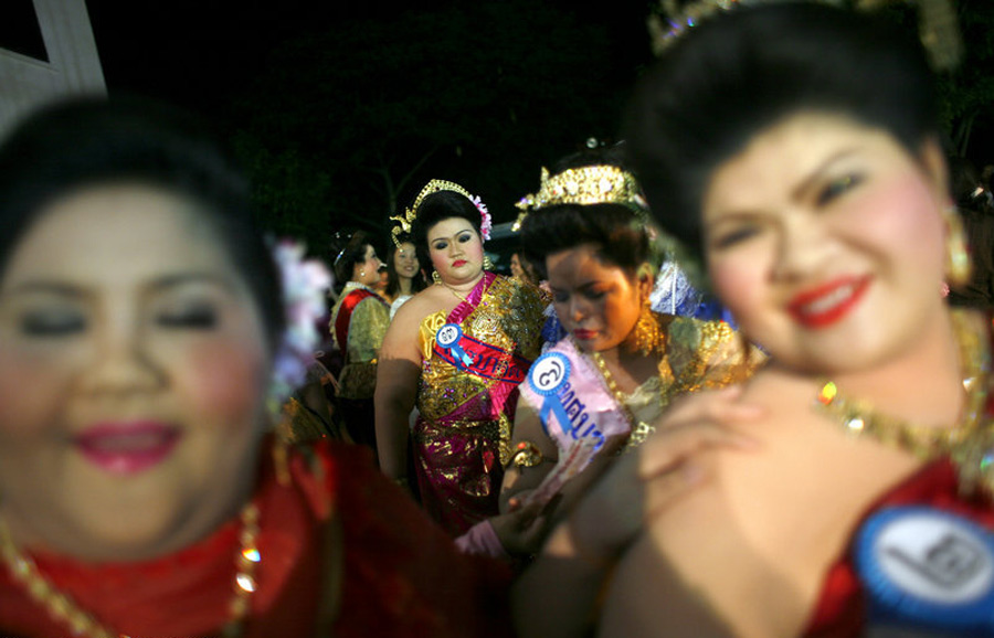 2009年12月19日,泰國(guó)大城,30多位體重超過(guò)80公斤的選手參加了胖美人大賽的角逐。Dario Pignatelli 攝