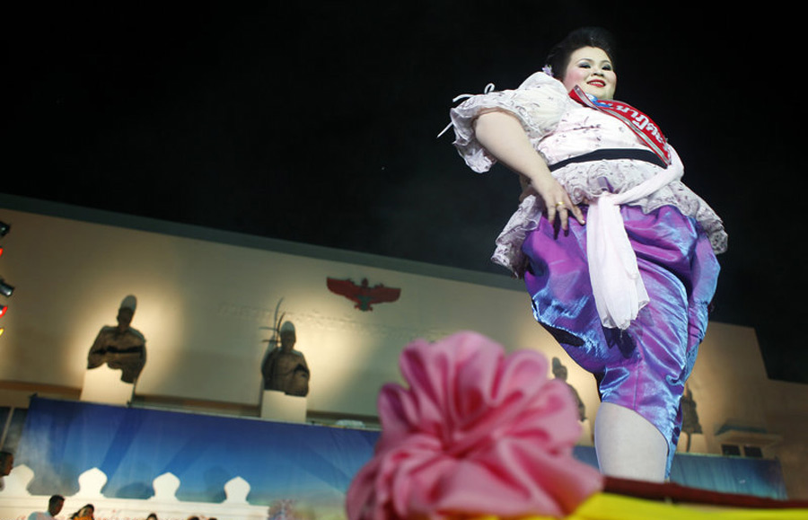 2009年12月19日,泰國(guó)大城,30多位體重超過80公斤的選手參加了胖美人大賽的角逐。Dario Pignatelli 攝