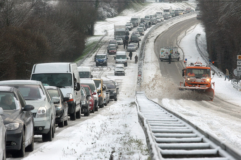 圖為12月18日,大雪導(dǎo)致法國圣約瑟夫地區(qū)出現(xiàn)嚴重堵車。