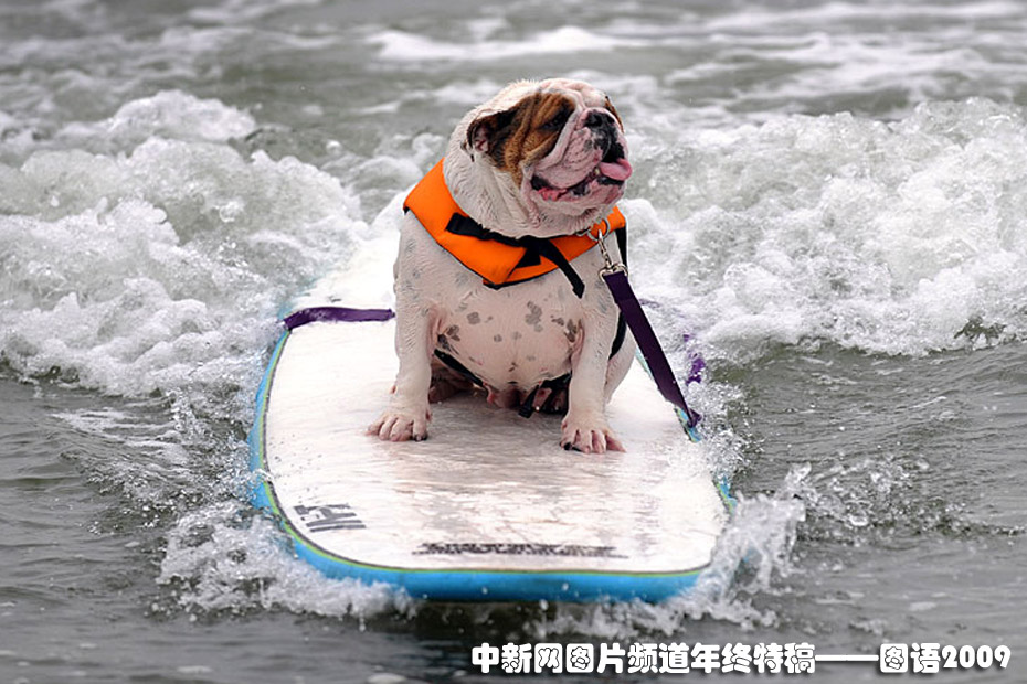 小狗沖浪比賽-讓人忍俊不禁--6月20日,在美國加利福尼亞州帝國沙灘舉行了一場小狗沖浪比賽,小狗們表現(xiàn)得十分認真。