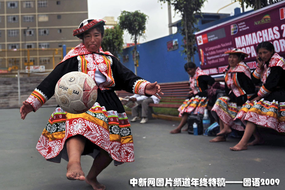 12月12日,秘魯印第安婦女在利馬國(guó)家體育場(chǎng)外舉辦了一場(chǎng)特別的足球賽,所有的球員均身著傳統(tǒng)服飾光腳上陣妙趣橫生。