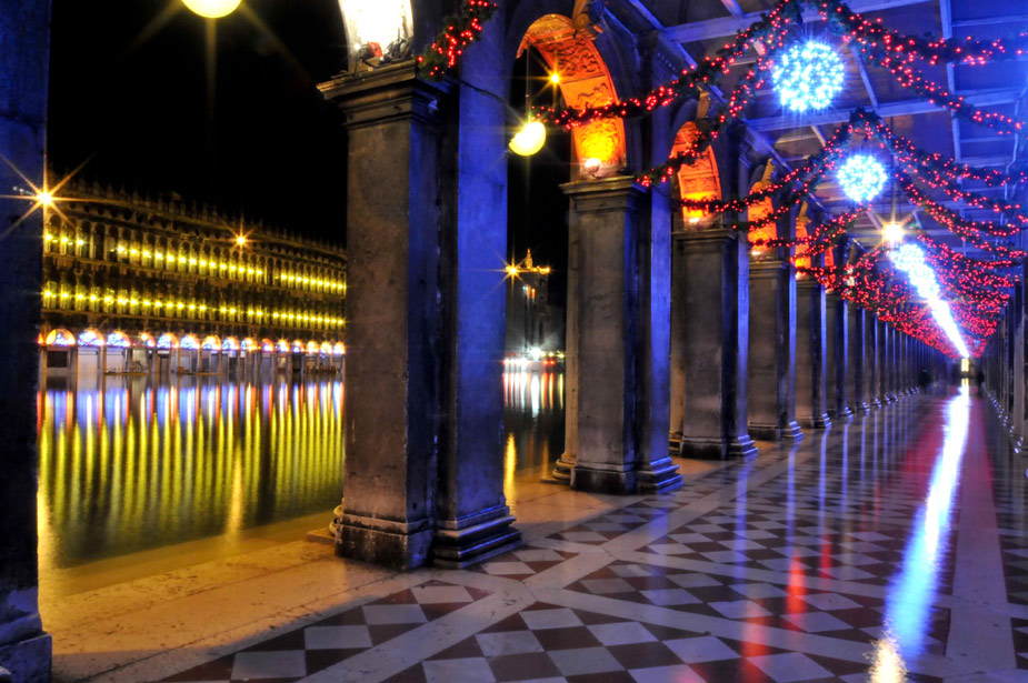 12月25日,意大利水城威尼斯圣馬可廣場(chǎng)被洪水浸泡。自從11月份以來,水城威尼斯受潮汐和一股強(qiáng)烈的熱帶風(fēng)暴影響屢遭洪水“淹沒”。