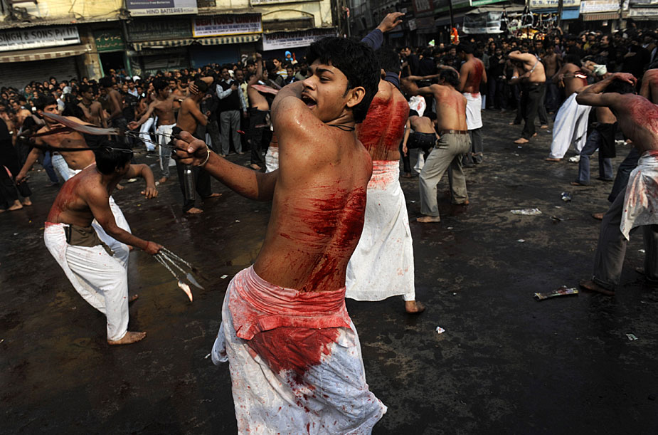 12月28日,印度穆斯林慶祝阿舒拉節(jié)。一些當(dāng)?shù)啬滤沽衷趦x式上用鐵鞭抽打自己,以此慶祝節(jié)日。圖片來(lái)源:中國(guó)新聞網(wǎng)