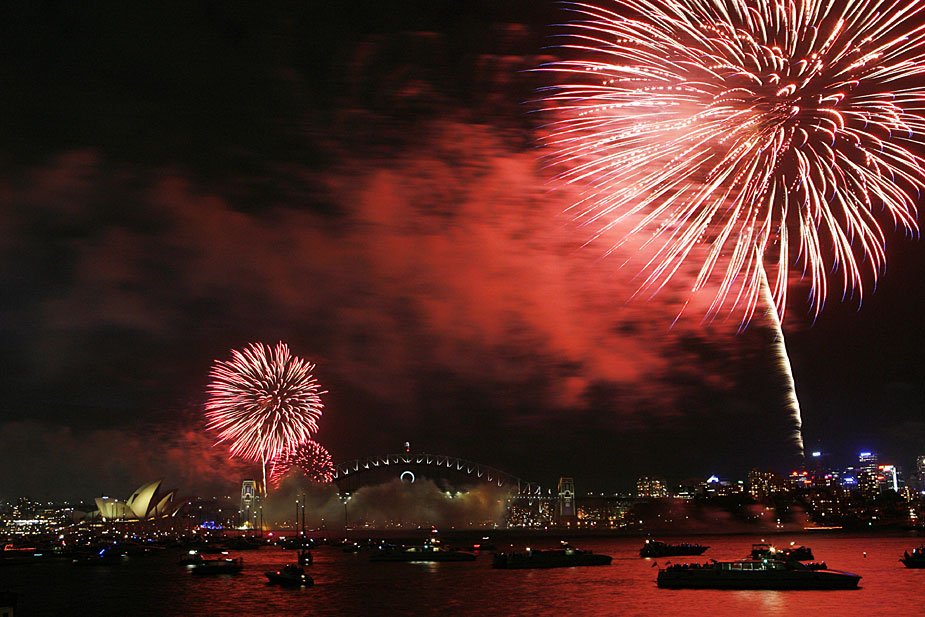 圖為12月31日,絢麗的煙花與悉尼灣大橋和悉尼歌劇院交相輝映。澳大利亞悉尼市當(dāng)晚舉行焰火表演,迎接即將到來(lái)的新年。