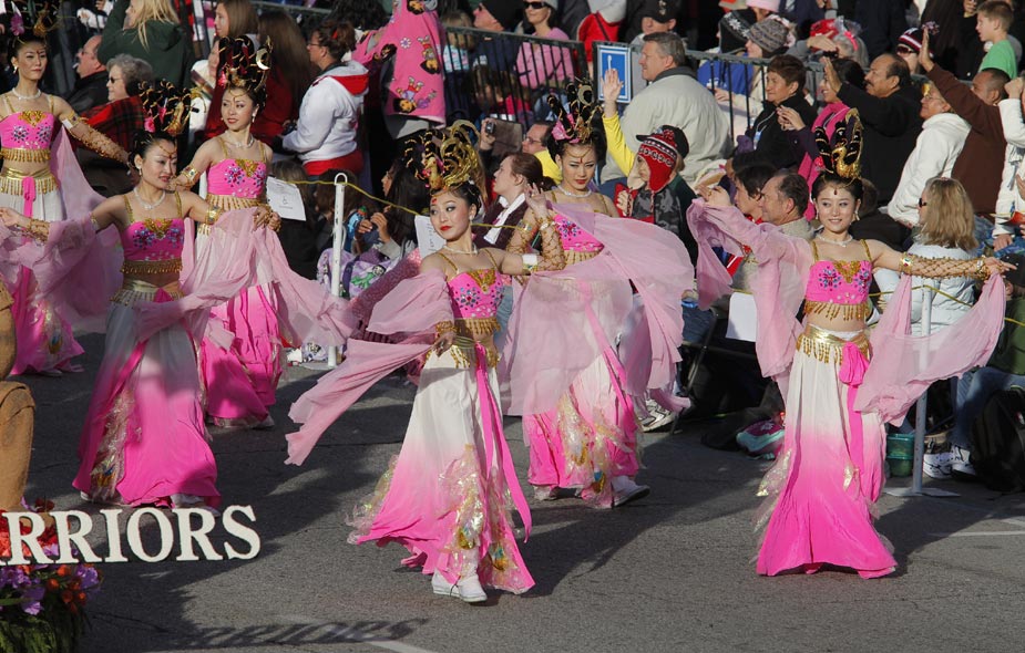 美國(guó)當(dāng)?shù)貢r(shí)間1月1日,第121屆美國(guó)玫瑰花車(chē)大游行在加州帕薩迪納市隆重舉行。著名影星成龍助陣中國(guó)上海世博花車(chē)。圖片來(lái)源:中國(guó)新聞網(wǎng)