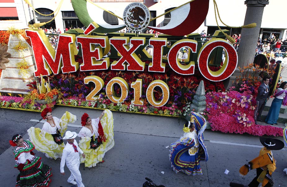 美國(guó)當(dāng)?shù)貢r(shí)間1月1日,第121屆美國(guó)玫瑰花車大游行在加州帕薩迪納市隆重舉行。著名影星成龍助陣中國(guó)上海世博花車。圖片來(lái)源:中國(guó)新聞網(wǎng)