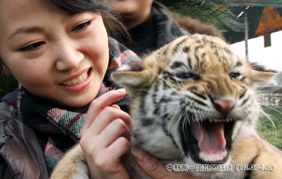2010年1月1日,重慶野生動物世界把出生一個月的3胞胎小老虎抱到園區(qū)與游人親密接觸。虎崽們乖巧可愛又不失威武的形象讓游人愛不釋手,游人們紛紛與之親密接觸、合影。圖片來源:中國新聞網(wǎng)>>點擊觀看詳細(xì)內(nèi)容