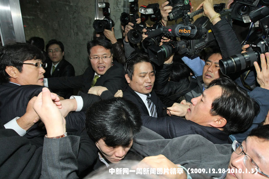 周四(31日),韓國大國家黨當日決定在國會245室進行預決委審議之后,民主黨議員趕往現(xiàn)場,與大國家黨議員發(fā)生了肢體沖突。圖片來源:中國新聞網(wǎng)
