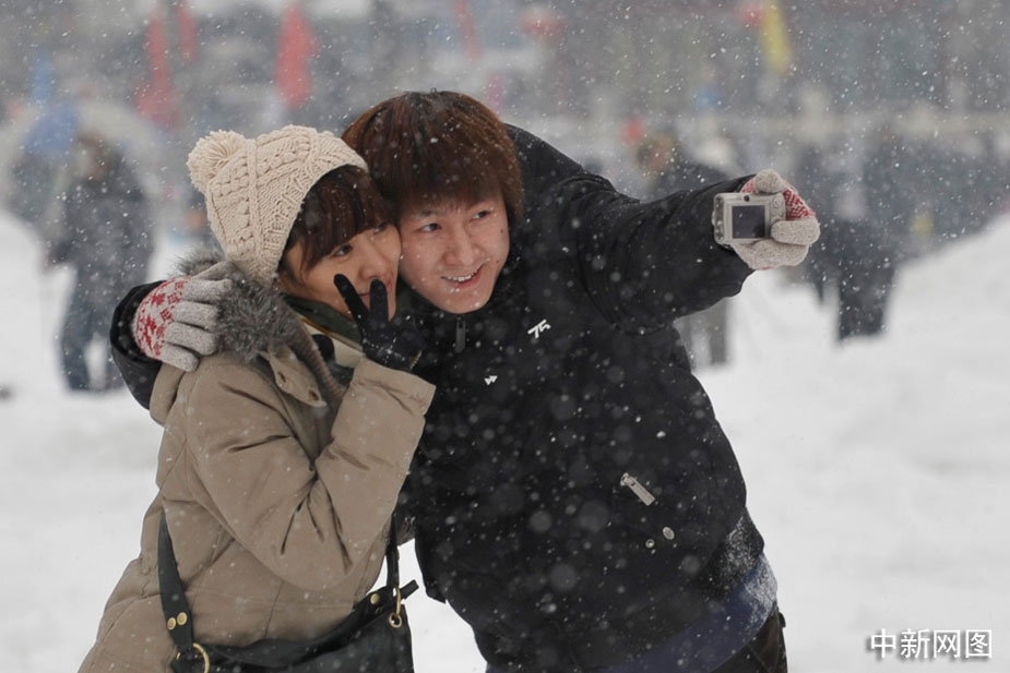 1月3日,北京降下大到暴雪,白天溫度降到零下6度。天氣雖然寒冷,但卻擋不住盼下雪的北京人外出游玩兒和去逛街市。圖片來源:中國新聞網(wǎng)