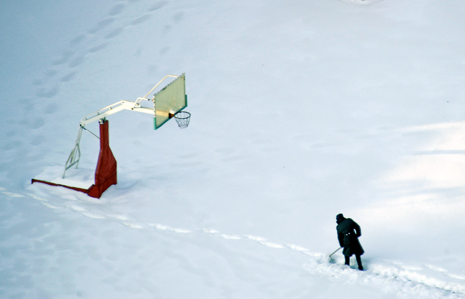 1月4日,北京,一名工人正在清除學;@球場的積雪。